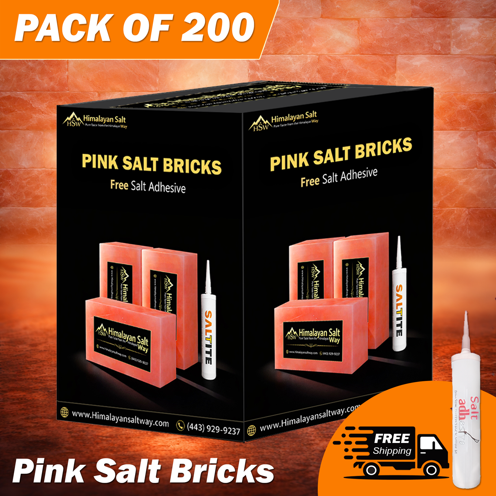 Himalayan Pink Salt Bricks 8x4x2 Pack of 200 | 6 Free Salt Adhesive